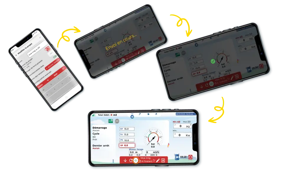 LinkHybPro représente la nouvelle génération d’applications mobiles hybrides pour automates. Déployée en 2024, elle succède à LinkHyb (lancée en 2022) en offrant plus de fonctionnalités pour une supervision à distance intuitive et complète. Compatible avec les boîtiers de régulation de stockage, d’irrigation et de commande à distance, cette application combine visualisation des données et commandes dans une interface unique.