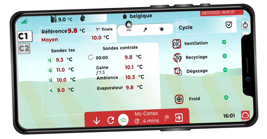 Visualisez l’état complet de votre installation, incluant les consignes, les états de cycles et les alarmes.