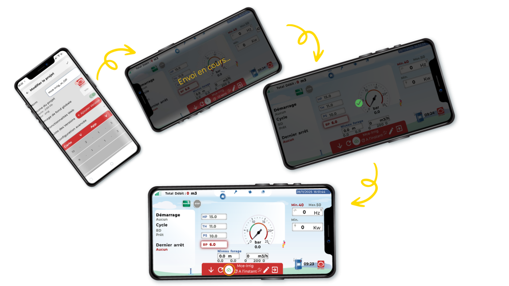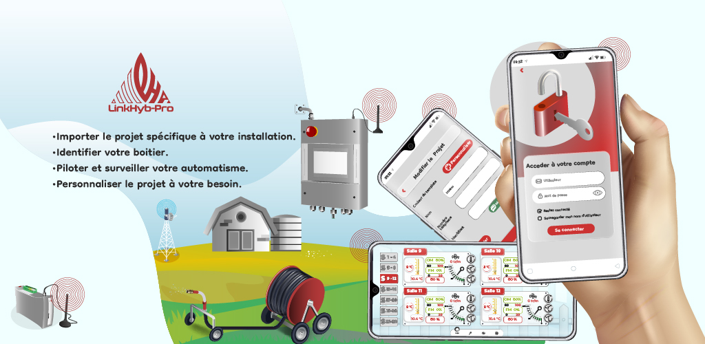 LinkHybPro représente la nouvelle génération d’applications mobiles hybrides pour automates. Déployée en 2024, elle succède à LinkHyb (lancée en 2022) en offrant plus de fonctionnalités pour une supervision à distance intuitive et complète. Compatible avec les boîtiers de régulation de stockage, d’irrigation et de commande à distance, cette application combine visualisation des données et commandes dans une interface unique.